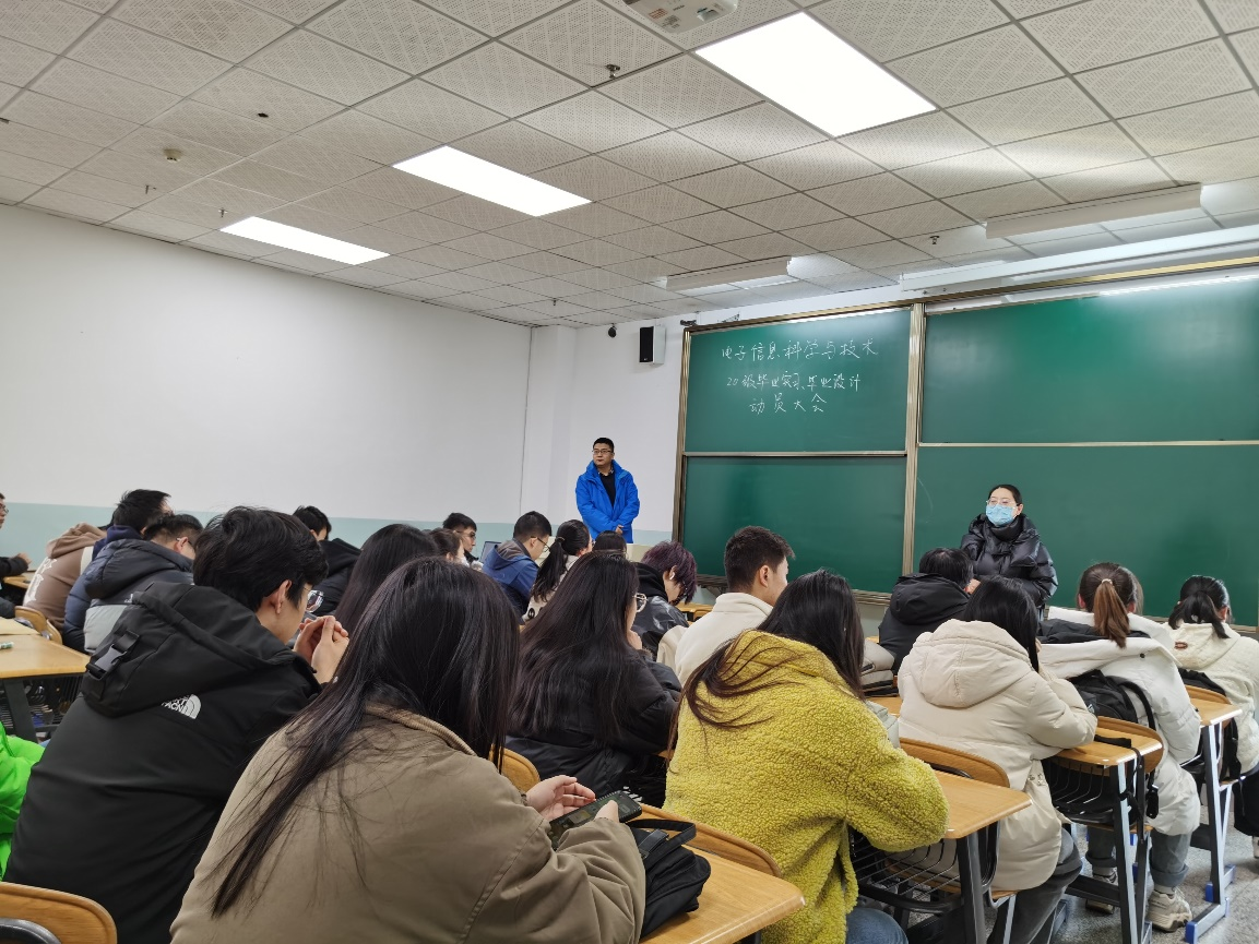 2024年1月11日11点45分,电信工程学院电子信息系在敦雅楼C102召开了2020级学生的毕业实习和毕业设计动员会,电子系主任黄玲老师,以及电子系刘昀强老师、王艳周老师、漆宇晟老师参加会议,会议由刘昀强老师主持。