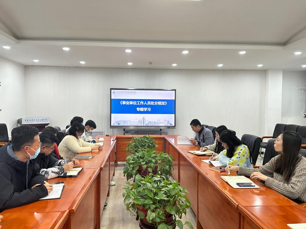 为进一步加强党风廉政建设,严肃教师队伍工作纪律,规范教师行为,2023年12月5日-12日,电信学院采取集中与分散相结合的方式,多渠道组织开展了《事业单位工作人员处分规定》集中学习活动。