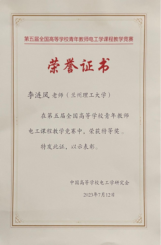 本届赛事在教育部电工电子基础课程教学指导分委员会的指导下,由中国高等学校电工学研究会主办,南京航空航天大学承办,中国高等教育出版社协办。赛事以加强电工学课程青年教师教学基本功和能力提升为着力点,充分发挥教学竞赛在提高教师队伍素质中的引领示范作用,鼓励青年教师更新教育理念,掌握现代教育教学方法,努力造就一支师德高尚、业务精湛、结构合理、充满活力的高素质专业化教师队伍。 李涟凤老师是我校电工电子国家级教学团队和电工电子红柳一流课程组的青年骨干教师,在教学团队的指导下,更新教育理念,运用现代教育教学方法,提高教学效率,进行课程思政育人,展示了国家级教学团队和红柳一流课程组教师的专业水平和风采,为推动我校电工学教学的改革与发展奠定了良好的基础。(撰稿:林洁;终审:王玲)