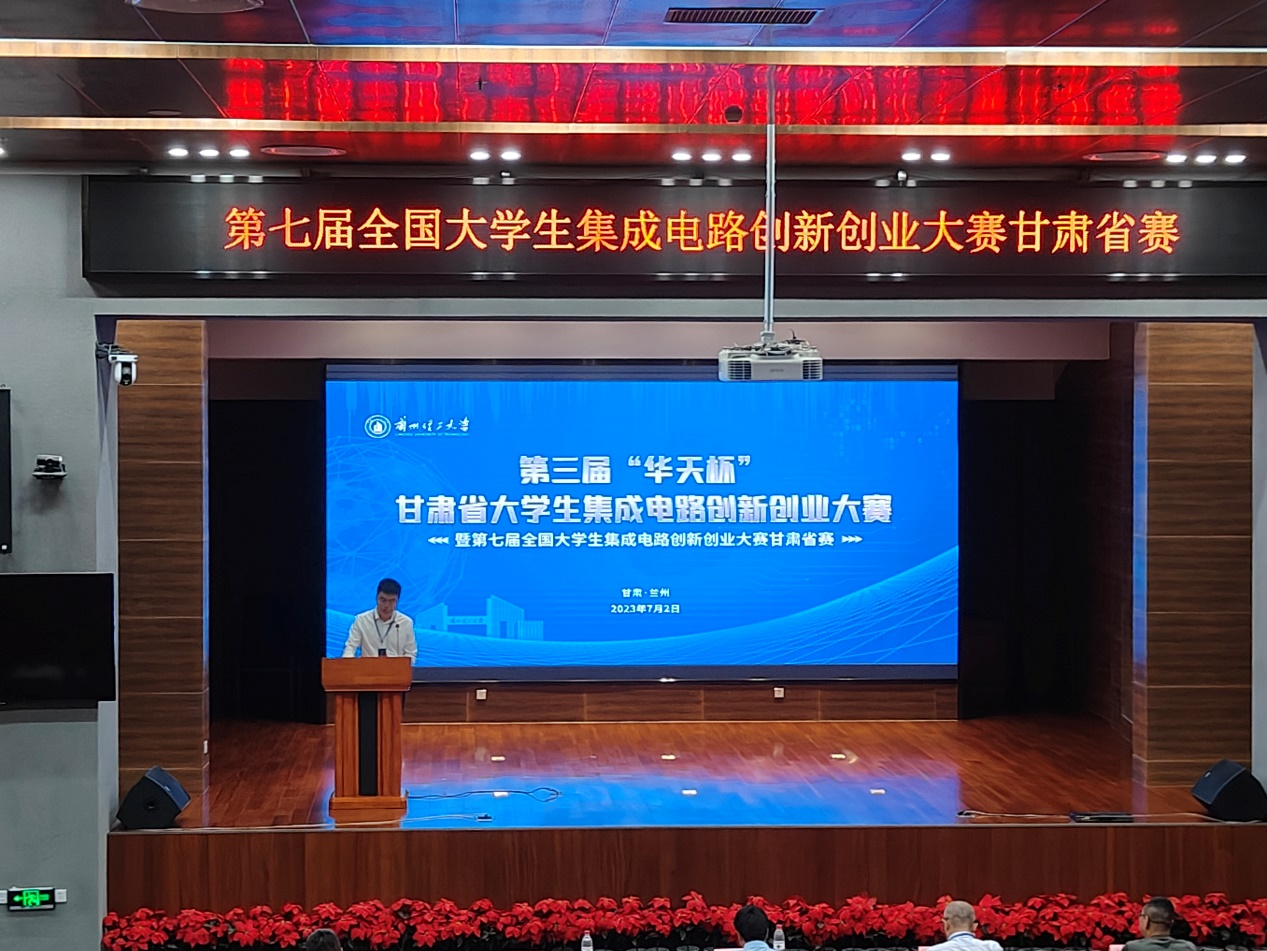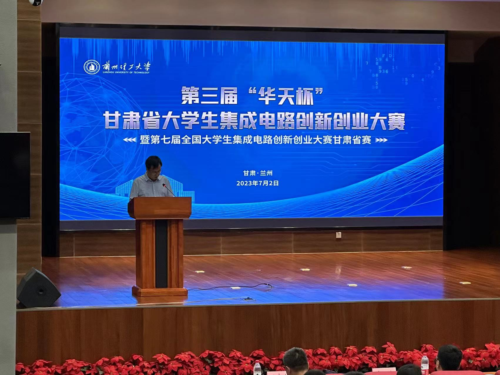 为推进大学生培养机制改革,提高大学创新实践能力,由甘肃省教育厅主办、兰州理工大学和甘肃省电气、电子、自动化类专业教学指导、认证与教材建设委员会、天水华天科技股份有限公司承办的第三届甘肃省大学生集成电路创新创业大赛暨全国大学生集成电路创新创业大赛甘肃省赛于2023年7月2日在兰州理工大学举行。在开幕式上甘肃省教育厅高等教育处副处长许力斌首先代表主办方对竞赛的顺利召开表示祝贺,介绍集成电路技术对当今科技发展的重要支撑作用,期望参赛师生能够以此次比赛为契机,相互交流、相互学习,共同推动我省集成电路技术的发展。兰州理工大学党委常委、副校长韩建平作为承办方代表对来自省内各高校的参赛师生表示热烈的欢迎,并介绍兰州理工大学学生创新能力培养体系构建及取得经验。