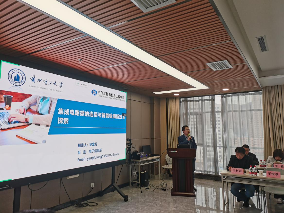 2023年3月30日甘肃省集成电路制造材料创新联合体一届三次理事会在天水华天科技有限公司电子科技园科研楼915会议室召开,电信学院陈伟院长和电子信息科学与技术专业相关老师应邀参加。会议由联合体理事长、华天科技副总经理宋勇主持,联合体秘书长张宏杰汇报了2022年度工作以及2023年度工作计划,并提交理事会通过表决。联合体专家委员会主任张进兵主持规划2023重点项目申报工作,联合体成员单位围绕集成电路相关主题介绍项目开展情况,电子信息系杨富龙老师汇报了集成电路封装与测试未来产业技术学院和微电子现代产业学院建设工作,并以“集成电路微纳连接与智能检测新技术探索”为主题系统介绍我院相关工作进展及应用前景。