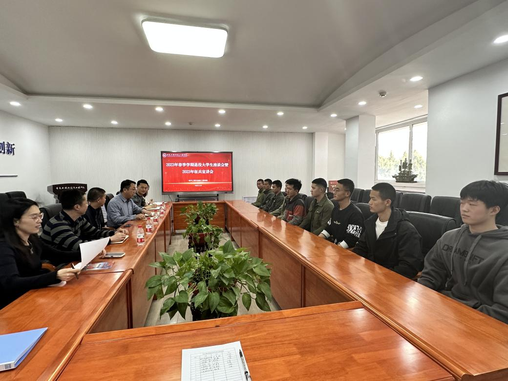 为进一步推进我院退役大学生士兵管理服务和征兵工作,鼓励退役大学生士兵继承和发扬部队光荣传统,发挥骨干带头作用,2023年3月28日,电信学院在彭家坪校区舒卷楼B201会议室召开2023年春季学期退役大学生座谈会暨2023年征兵宣讲会。学院副院长冯宜伟、党委副书记刘炜、学校学生处学生学业发展指导与国防教育中心主任唐洪川、学院辅导员代表、2023年春季学期退役大学生及计划2023年下半年应征入伍的学生参加了本次会议。会议由学院学生工作办公室主任陈冲主持。