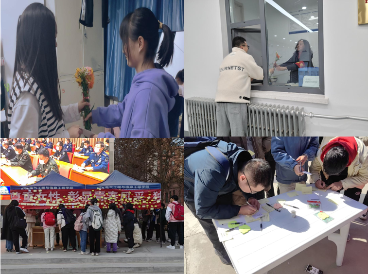 电信学院组织召开“智慧与美丽同行”女生节系列活动。3月7日,学院青年志愿者在校园、教室、食堂、宿舍等地方,为女生们送上手写贺卡和鲜花,让她们感受到浓浓的节日祝福,营造了温馨有爱的校园氛围。同时学院倡导学生们心怀感恩,给身边的女性长辈和家人打一通电话、发一条短信,为她们送去祝福,让她们在平淡的一天中也能感受到不平凡的爱意。除此之外在红柳广场上,学院还开展了寄语女性的活动。活动中,参与同学为女性朋友送去节日祝福与关心,鼓励大家自立自强,奋发向上,展现当代女生的风采。