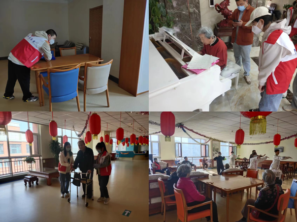 为进一步发扬志愿服务“奉献、友爱、互助、进步”的精神,3月5日电信学院志愿者走进金益康医养中心进行系列志愿服务活动。志愿者在负责人的安排下投入到关爱老人的活动当中。志愿者们首先在老人生活活动场地里打扫卫生,扫地、拖地、收拾书架及货架等,为老人们创造了一个干净舒适的休息环境。随后在休息区看望老人,陪老人们聊聊天,分享身边趣事,畅聊生活家常。