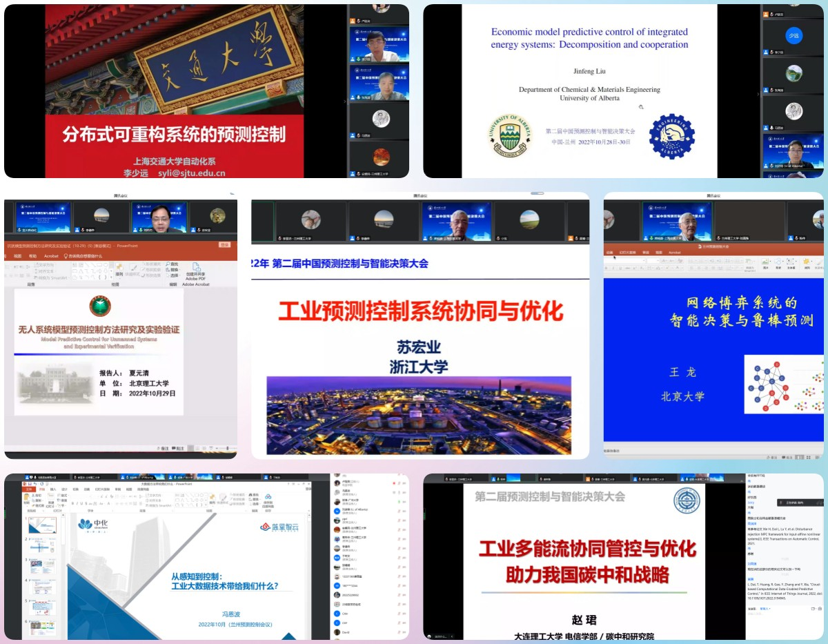 10月29日至10月30日,由中国自动化学会和中国自动化学会预测控制与智能决策专业委员会主办,我校电信学院承办的“第二届中国预测控制与智能决策大会” 通过腾讯会议的形式在线召开。中国自动化学会第七、第八、第九届理事会副理事长席裕庚教授、中国自动化学会预测控制与智能决策专业委员会主任委员李德伟教授、兰州理工大学李仁年副校长、兰州理工大学电信学院院长陈伟教授以及来自全国高等院校、科研院所和企业的近700名专家学者和青年学生参加了此次会议。会议由大会报告、青年专家专题报告和评奖论文报告组成,李德伟教授和陈伟教授担任大会主席,华北电力大学刘向杰教授担任大会报告主席。