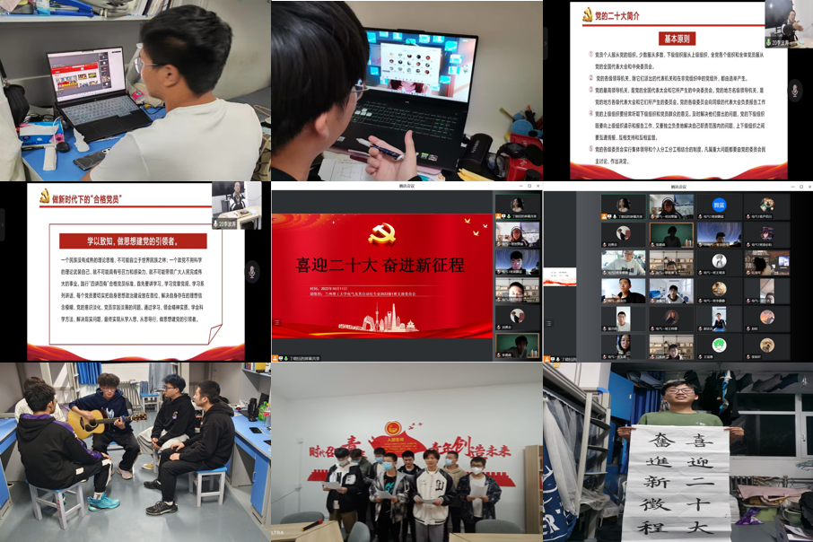 青春不息,学习不止。为了让党的声音最广泛直达青年,学院通过开展集体学习、读书分享、红色观影、朗诵演讲等形式开展理想信念教育,将“大道理”转化为“小故事”,增进学习教育效果。在活动中团支部书记带领团员青年回顾了新民主主义革命时期、社会主义建设时期、改革开放和社会主义现代化建设新时期历史成就,解读历史经验,传承红色基因,感受百年奋斗的恢宏史诗,坚定听党话、跟党走的信念。除此之外各支部用唱红歌、朗诵诗歌、撰写书法作品等方式迎接党的二十大。
