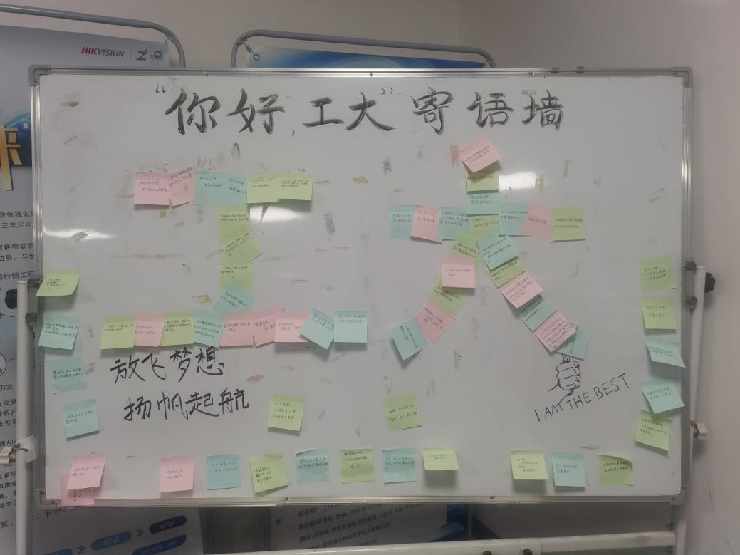 青春正当时,携手共奋进,为进一步增强对学校的归属感、认同感和自豪感,电信学院组织开展了“你好 工大”寄语活动。“奋进求是是前进的方向”,“学校的银杏林越来越美了”,“好好学习,锻炼身体,热爱生活。”,“423加油,我们是相亲相爱的一家人!”······一张张小小的便利贴,贴满了整个寄语墙。通过寄语的方式,同学们增强学习动力,明确奋斗目标,践行“艰苦奋斗 自强不息 求真务实 开拓创新”的红柳精神。