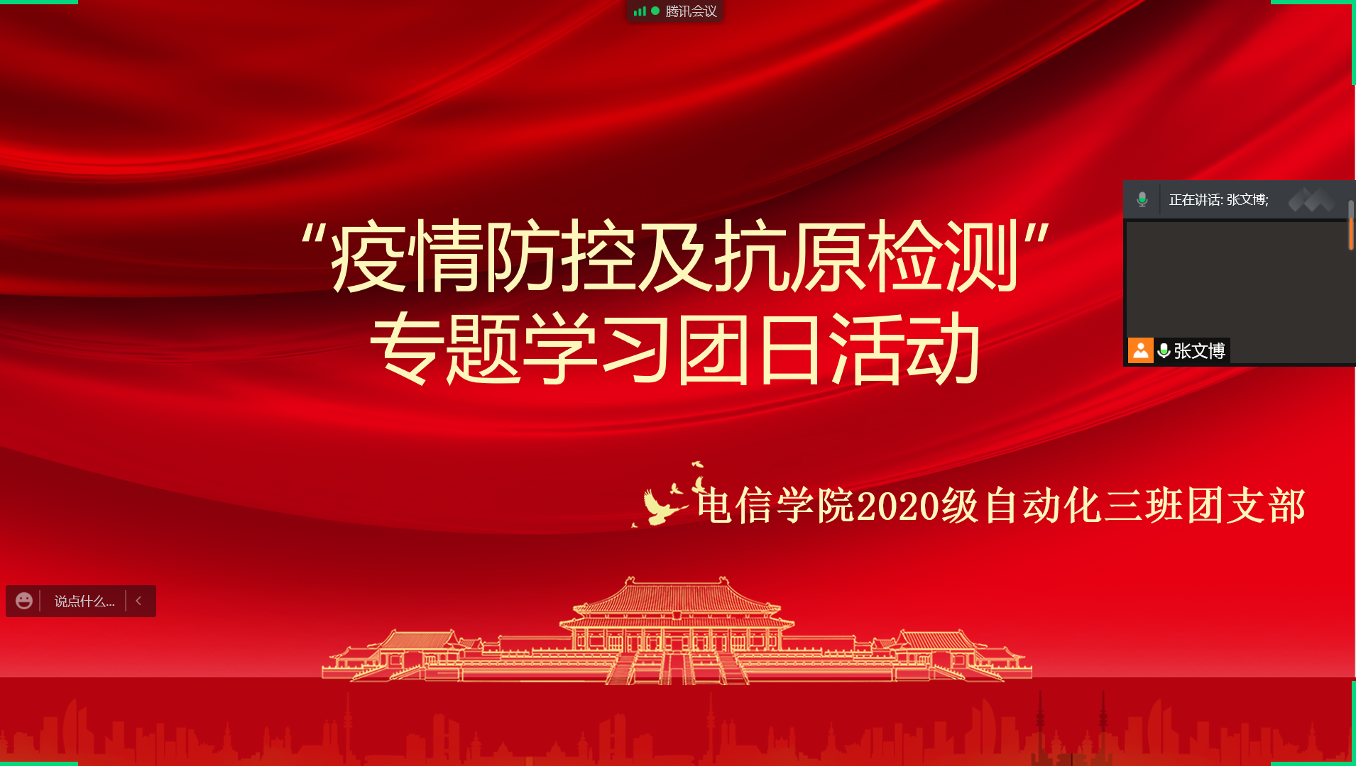 当前,国内多地爆发新冠肺炎疫情,疫情防控尤为重要,为进一步做好疫情防护工作,增强学院师生的疫情防控意识,做到科学防疫,高效防疫,4月11日—13日,电信学院组织召开疫情防控及抗原检测专题学习线上班会和团日活动,进一步增强学生疫情防控能力,提高疫情防控意识,确保全体学生的身心健康。