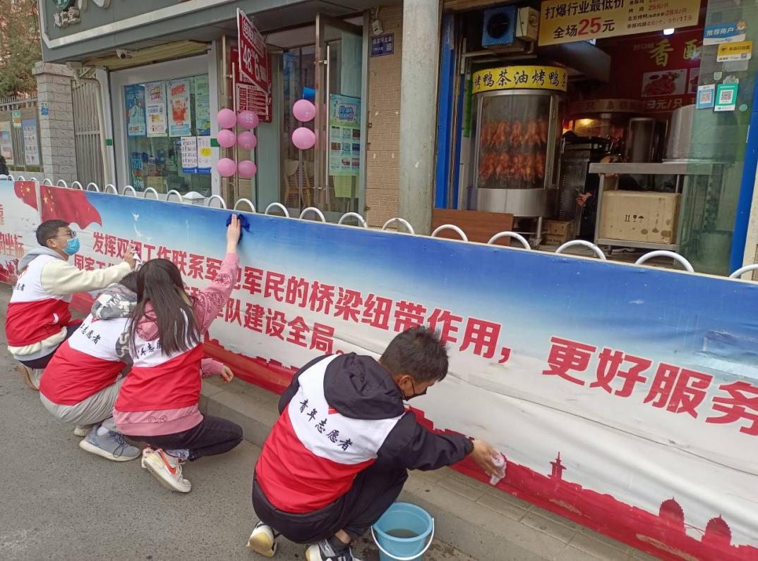 3月5日当天,青年志愿者们身着志愿服,携带毛巾、簸箕等卫生工具前往龚家湾社区开展街道卫生清扫和志愿文明岗值班。在龚家湾十字,同学们不怕脏、不排累满身干劲的打扫街面垃圾,对两侧的文化牌进行擦拭,展现了志愿者们吃苦耐劳、阳光向上的精神状态。在担任交通指挥志愿者时,同学们挥动手中的小红旗,示意居民按照交通信号灯的提示文明穿越马路,同时向行人分发文明出行宣传册,引导市民遵守交通法规,助力兰州文明城市建设。