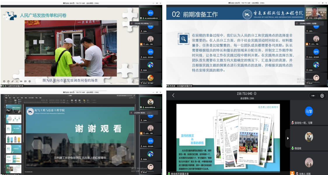 12月1日,兰州理工大学电信学院召开“实践归来话收获”暑期社会实践分享会。通过线上方式,组织部分优秀团队对学院青年进行社会实践的相关介绍与经验分享。
