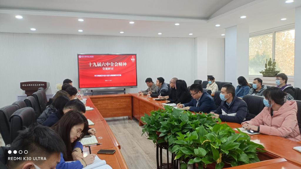 2021年11月12日,学院党委通过线上线下等方式组织全院师生收看十九届六中全会新闻发布会,学习党的十九届六中全会精神。通过观看直播,深入学习领会十九届六中全会精神,大家纷纷表示十九届六中全会是一次承前启后、继往开来的重大盛会,对全党凝心聚力、不忘初心,抓住机遇、战胜挑战有着重大而深远的意义。