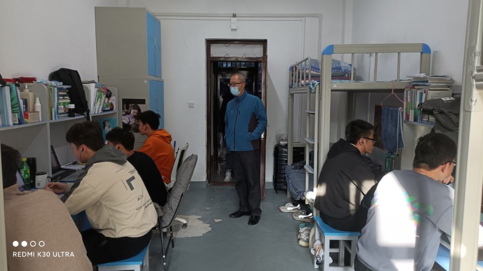 学院王玲、陈伟等领导班子成员按照网格化管理工作要求,重点走访了自己所负责的楼层,在走访过程中仔细询问了同学们的线上学习情况和疫情防控生活期间遇到的困难,向大家强调了保持宿舍卫生、做好个人防护等情况。