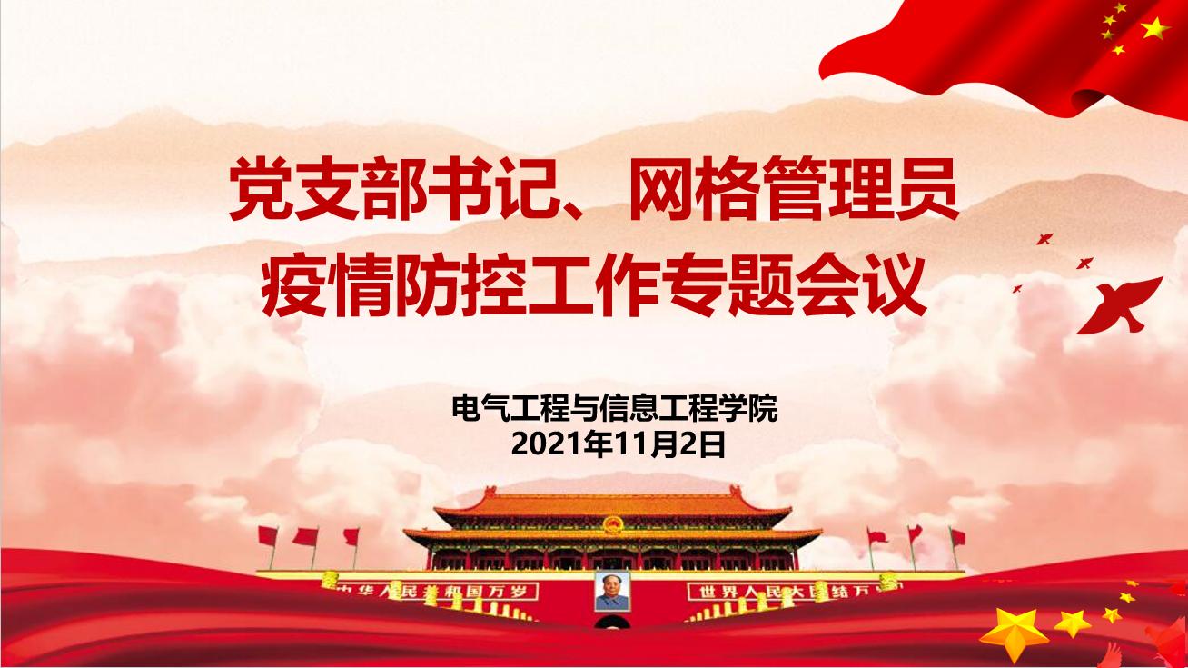 2021年11月2日,电信学院召开党支部书记、网格管理员疫情防控工作专题线上会议,学院全体党支部书记、网格管理员参加了本次会议。会议由学院党委副书记刘洪国主持。