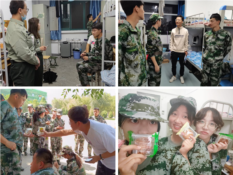 9月21日中午,学院党委副书记刘洪国及辅导员专程来到军训教官宿舍,对各位辛勤付出、不辞辛劳的教官表示了诚挚的谢意,送上节日的祝福,希望各位军训教官严格施训、科学施训,通过军训培养学生严明的纪律意识,培养学生勇于拼搏、团结奋斗的优良品质。