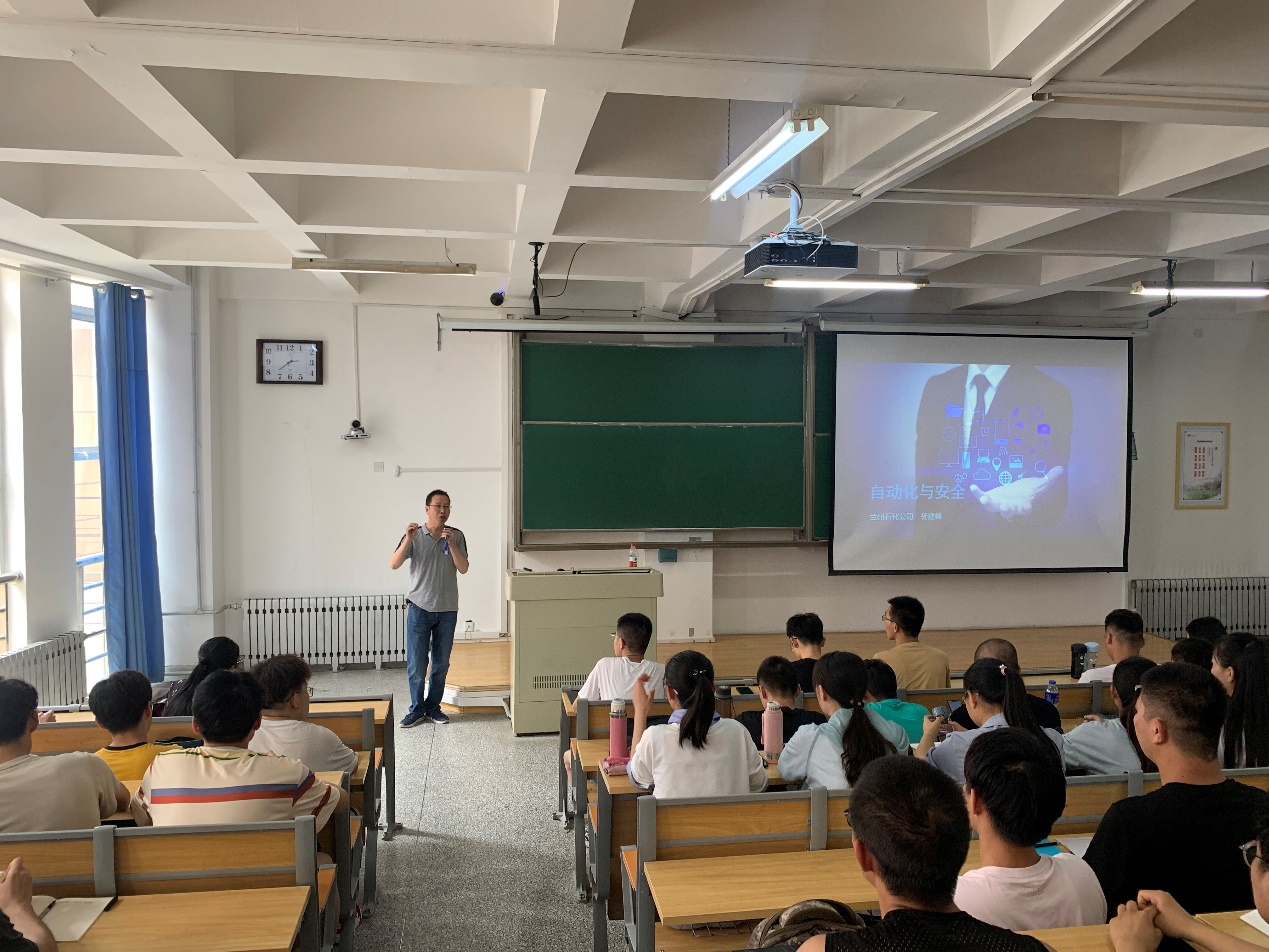 为确保19级自动化专业和机器人工程专业的“认识实习”教学效果,2021年6月28日,自动化系邀请中国石油天然气集团公司兰州石化分公司电仪事业部安全总监杨建峰副总工程师,在彭家坪校区1号教学楼208#阶梯教室开展了主题为《自动化与安全》的技术讲座,讲座由自动化系主任蒋栋年副教授主持,赵正天老师、李亚洁老师,19级自动化专业与机器人工程专业的全体学生参加了本次讲座的学习。