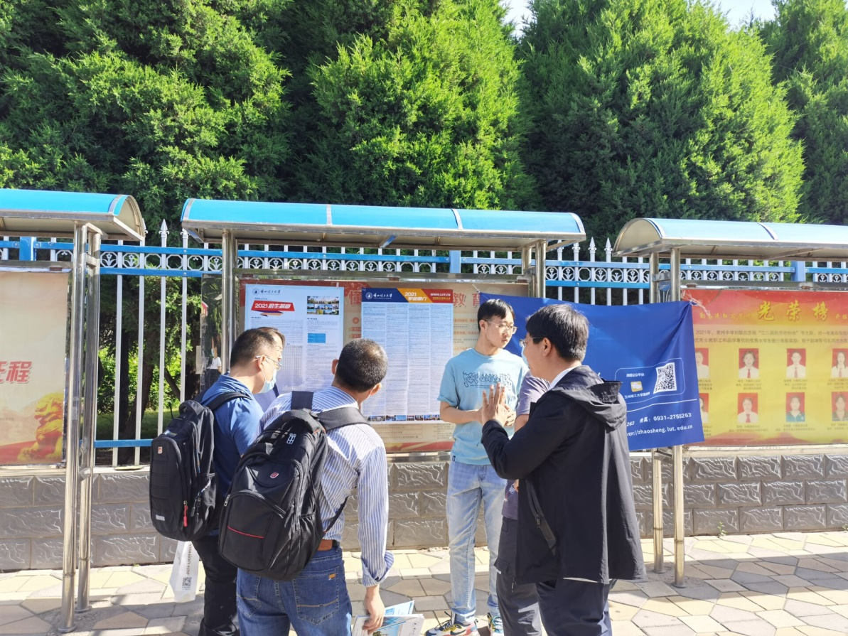 受兰州境外输入疫情影响,招生工作组无法进入校园展开招生宣传工作。工作组克服困难,分别在酒泉中学,肃州中学,酒泉一中及金塔县中学等学校校门口定点开展招生宣传、志愿填报指导服务工作,与考生及家长面对面进行交流。