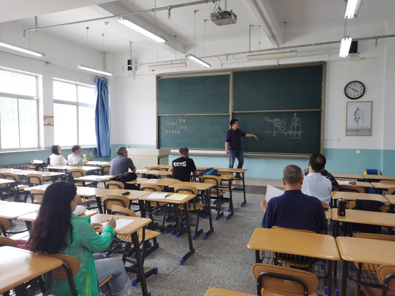 三位老师在试讲过程中,分别通过30分钟的讲课充分展示了备课、语言表达、黑板板书等环节。试讲结束后,评审教师就三位老师的授课内容、方法、语言表达等方面阐述了意见,对备课态度、授课思路等进行了肯定;同时就每位老师讲课中所存在的不足之处给出了针对性的意见;最后就参考教材选择、备课思路、授课方法、课堂气氛、教案撰写等内容传授了经验。