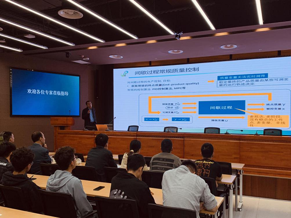 丁宝苍教授围绕催化裂化产率观测与目标寻优,对LPV模型的输出反馈鲁棒预测控制以及工业双层DMC等展开了详细介绍。吴啸副教授探讨了燃煤电站碳捕集系统间的动态响应差异以及运行要求,提出了利用碳捕集系统“蓄能调峰”特性的新型燃煤电站-碳捕集系统协同控制策略,探明了提升燃煤电站碳捕集系统灵活性支撑功能的可行机制。张浪文教授就加权图论的社区发现复杂系统划分等研究内容进行了介绍,通过对系统构建带权重的有向图,保证了各个划分子系统之间的连接权重最小,进而实现分布式预测控制。赵忠盖教授介绍了基于MPC的质量控制,通过构建预测模型,在确定关键变量的最优轨迹的基础上,利用轨迹跟踪控制器对间歇过程中产生的扰动影响进行分析,从而实现了间歇过程质量控制。