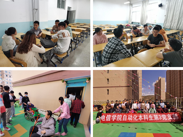 5月9日,支部在励志楼开展考研、就业经验交流活动。邀请17级自动化三班多名同学分享考研复习及择业就业经验。大家积极踊跃地向学长学姐提出了自己的困扰,分享同学做了详实的解答,现场火热。为弘扬了"奉献、友爱、互助、进步"的志愿服务美德,5月11日,支部组织党员来到了兰州市七里河区爱心托老所,开展了长达三个小时的敬老爱老志愿活动。志愿活动期间,志愿者们协助工作人员清扫老人们的活动区域,帮助老人们打扫卫生、整理房间等。陪老人们拉家常,讲笑话,给老人们带去欢笑和快乐。在陪老人聊天的同时,也让志愿者们感受到了中国在伟大的共产党的领导下有了翻天覆地的变化。