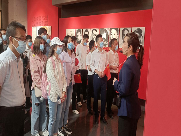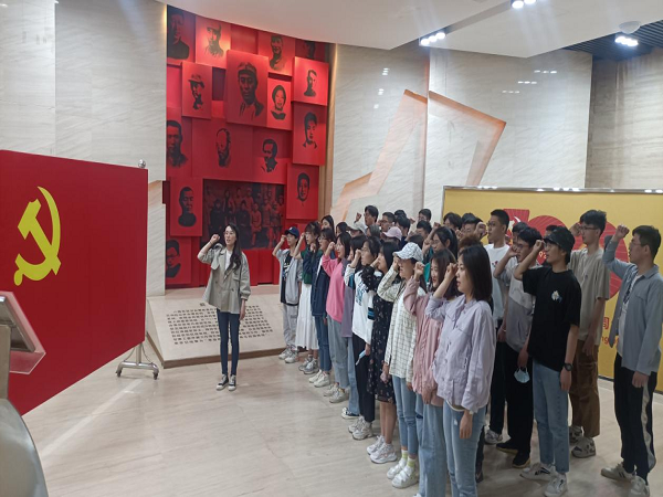在讲解员的引导下,大家在听、看、思中,共同经历那一段光荣璀璨的历史,从中感悟革命精神,领会红色文化的思想内涵和时代价值。展览墙上一张张黑白照片,在诉说无数革命先烈不怕流血牺牲,敢于夺取胜利;在告诫大家,铭记历史,勿忘国耻。岁月褪去了旧址上青砖绿瓦的颜色,但它的故事将永久的铭刻在一代又一代的共产党人心中,参观最后,指一面刻满名字的墙,那是惨痛而光辉的历史,也是永不凋谢的丰功伟绩,每一位参观成员都站立良久,缅怀英勇的先烈们。参观结束后陈冲老师带领大家举行了重温入党誓词仪式。
