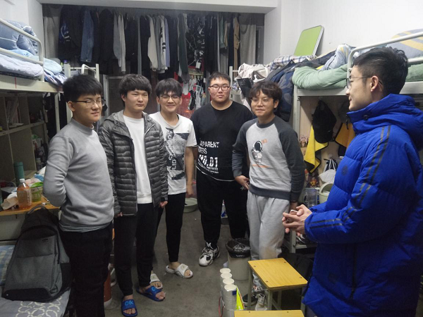张存亮、魏凡皓到低年级宿舍强调考风考纪,诚信考试。同时给出规律作息,帮助制定复习计划和建议。希望大家多去图书馆和教室学习,并加强体育锻炼,养成良好的生活习惯,注意身心健康发展。