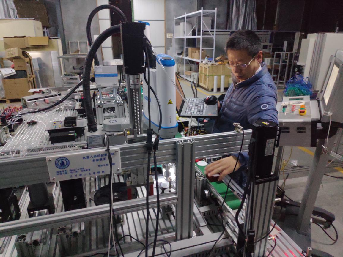 学校立项支持的“机器人协同控制系统实验装置”处于最后的调试阶段