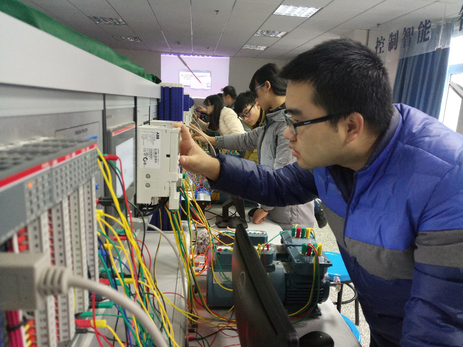 ABB自动化实验室在建设初期重视校企交流,着眼功能个性化定制。在实验装备布局设计期间,老师和学生拿着卷尺准确测量了实验室的每一寸实用面积并与企业技术人员最终决定了实验装置的尺寸、模块功能及数量;使用过程中以学生为中心,突出教学实践活动与工程场景有机融合。老师手把手教同学们使用来源于工程现场的工业元器件,逐步掌握多种变频操作模式及组态策略;以发展眼光正确对待实验室建设,积极探求自制试验设备研发路径。在ABB公司同仁的鼓励下,实验室工作人员前期自制了“拓展兼容型自动化控制实验装置”,受到工程教育认证和本科教学审核评估专家的肯定与鼓励,并获得教育部高校自动化类专业教学指导委员会第二届全国高校自动化类专业青年教师实验设备设计“创客大赛”铜奖。目前由学校实验建设与管理处立项支持的“机器人协同控制系统实验装置”也在最后的调试完成阶段;ABB自动化实验室的建设过程真正培养了一批扎根基层、积极开拓的青年教师队伍,对后续罗克韦尔自动化实验室和多能互补集成优化控制实验室的成功建立奠定了良好基础,同时对目前在建工业网络实验室和计划建设工业互联网技术创新中心产生积极影响。