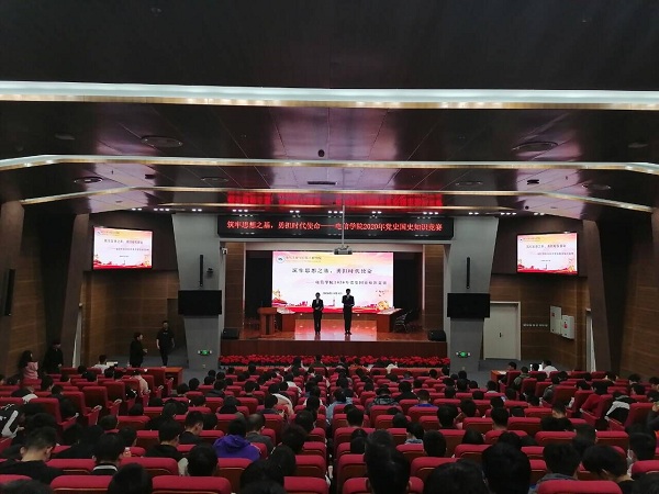 本次比赛分为两个知识竞赛和理论宣讲两个环节。各参赛队伍首先抽取了理论宣讲题目,进而指定一名选手参加党史国史主题知识竞赛环节活动。各位选手在台上通过题板当场展示出20道单选题和10道多选题的答案。