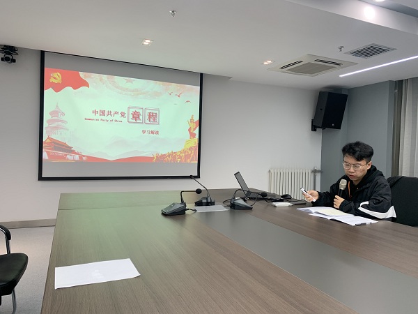 启动仪式过后,学院学生会文艺部负责人暨党章学习小组组长张智淇带领全体同学开展了首次集体学习,他结合自己在“十一”期间参加省青马工程培训的心得感悟,向大家介绍了学习《中国共产党章程》的重要意义和重点内容,并介绍了中国共产党的发展历程。他号召同学们高举习近平新时代中国特色社会主义思想伟大旗帜,尊崇党章,不断提高自身本领,自觉团结在党的周围,以党的指导为工作指南,切实做好自身建设和为广大师生服务工作。