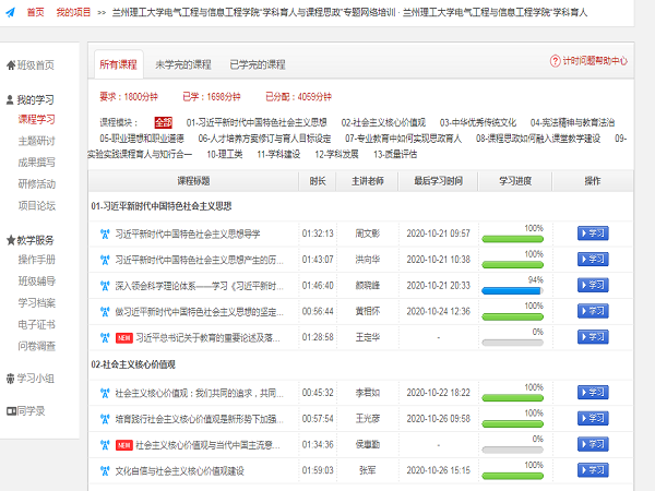 在本次竞赛前期,学院依托国家教育行政学院中国教育干部网络学院开展了2020年“学科育人与课程思政”专题网络培训,制订了详细教学计划,要求全体教师进行系统的学习和培训,并完成学习任务和学院考核要求。