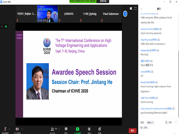 2020年9月7日至10日,兰州理工大学电气工程与信息工程学院电气工程专业陈克俭和刘政强同学参加了在线上召开的2020年高电压工程及应用国际会议(ICHVE)。本次会议是由清华大学主办,IEEE电介质与绝缘协会(IEEE DEIS)、电力系统及发电设备控制和仿真国家重点实验室、重庆大学、密西西比州立大学协办,清华大学电机工程与应用电子技术系、清华大学能源互联网创新研究院、清华四川能源互联网研究院承办。有来自海内外的700余名科研人员、高校师生、工程技术人员注册参加。报告会上,学术讨论气氛热烈,参会代表们踊跃发言、积极交流。多位专家教授现场倾情分享,针对新起点下的行业难点,展开了智慧与思想的碰撞,陈克俭同学和刘政强同学分别以《10kV智能配电开关辐射干扰分析》、《雷电背景下的多风机电场分布研究》为题,在电磁场模块分组讨论会上作了口头报告。大会精彩的主题演讲与口头报告将会议气氛推向高潮,多位与会者摩拳擦掌,向演讲者提出问题,进行精彩的交流探讨,真正做到了“开放研讨形式,促进学术交流”。