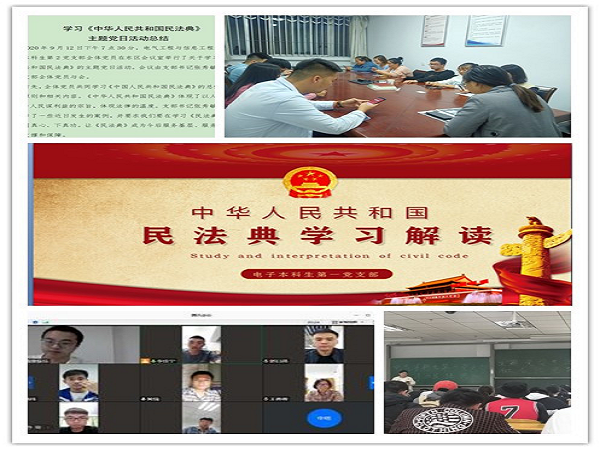 为深入学习习近平总书记在中共中央政治局第二十次集体学习中的重要讲话精神,推动《民法典》的贯彻实施,加强广大党员、群众对民法典相关知识及其意义的理解和贯彻。7月以来,电信学院党委统筹,鼓励学生创新学习形式,以党团班一体化的学习模式层层落实学习任务,确保本次学习活动取得实效。