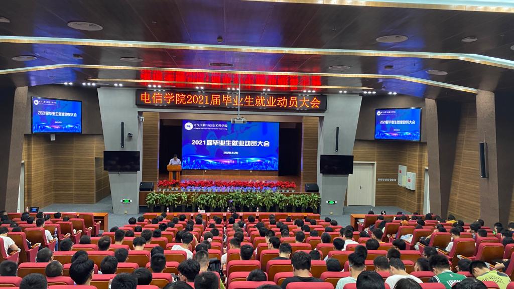 8月26日下午,电信学院在彭家坪校区图书馆106报告厅召开2021届毕业生就业动员大会。学院邀请学校学生就业指导服务中心李竹梅主任开展了《认清形势、抢抓机遇、积极就业》专题讲座。为了落实疫情防控期间工作要求,通过现场直播的方式在观成楼108教室设立分会场,学院610余名本科生毕业生、130名硕士毕业生及全体辅导员参加了活动。会议由学院党委朱毓杰副书记主持。