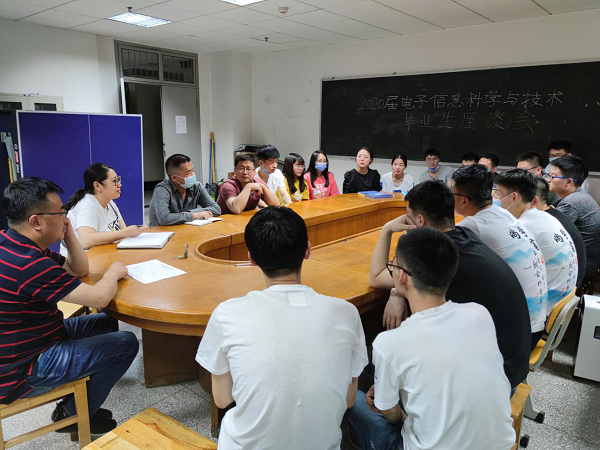 2020年6月28日,电子信息系在兰工坪校区综合实验室楼B202举行了2020届毕业生座谈会,会议由系主任黄玲副教授主持,学院副院长李二超教授、电子系教师代表孟凡成老师、杨富龙老师、裴喜平老师、段晓燕老师以及20名毕业生代表参加会议。