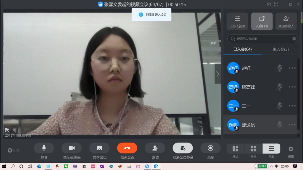 历史赋予使命,时代要求担当。为了更好地引导青年学生全面学习、系统领会习近平新时代中国特色社会主义思想,内化于心、外化于行,6月21日,电信学院2018级自动化2班组织开展“新时代呼唤新思想,新青年肩负新担当”线上主题团日活动,活动由班级团支书主持,电信学院副院长李二超和班主任李婷参加活动。