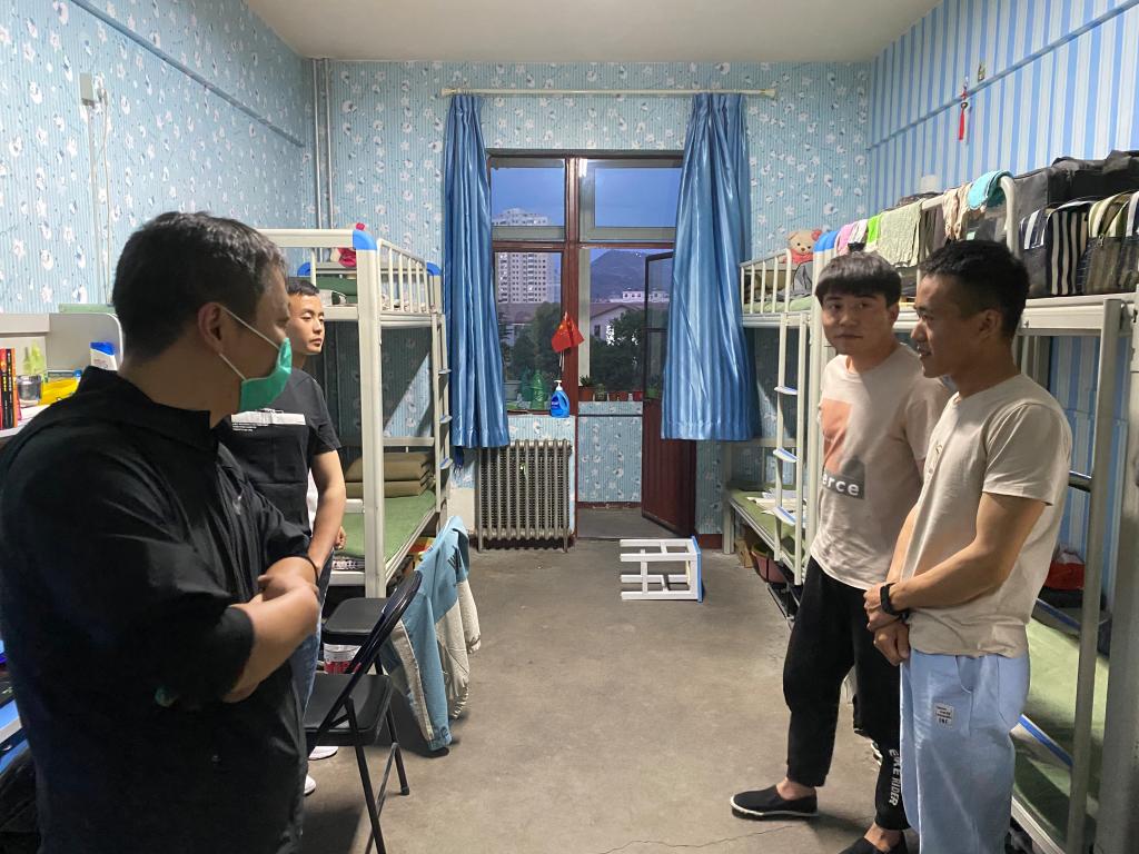 5月19日晚,电信学院党委副书记朱毓杰和辅导员老师深入学生宿舍,看望第二批返校的本科四年级学生。