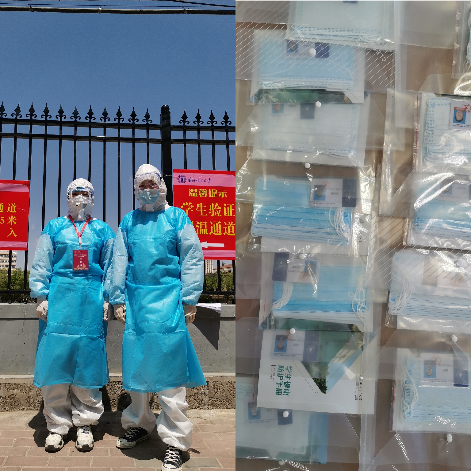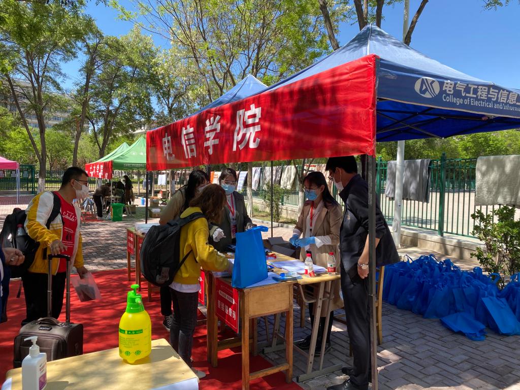9日当天,学院2020届博士生毕业生和硕士毕业生从指定校门进入校园后,学院认真完成身份复查核验、校园一卡通更换后,领取学院爱心防疫礼包,内装有防护口罩、《学生健康防护手册》、《校园一卡通手册》、免洗手消毒凝胶、洗洁精、一次性垃圾袋等。学院领导当天指导学生返校报到工作,询问路上辛苦不辛苦并叮嘱学生安心学习、安心生活,确保身心健康。2017级电气工程硕士毕业生李琳同学顺利返校后有些兴奋地说道:“终于回来了!”2017级控制工程硕士毕业生赵雨萌见到辅导员老师后激动的说“真想你啊”。