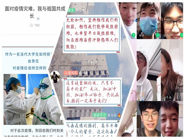 新型冠状病毒疫情发生以来,全国上下同心战疫,共克时艰。为进一步激发青年学子的责任与担当,引导学生把灾难当教材、把困难当磨砺,彰显青年一代在抗击疫情中的蓬勃力量,电信学院团委组织学院各团支部开展“面对疫情灾难,我与祖国共成长”主题团日活动。