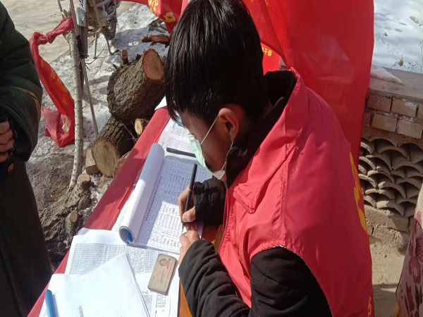 燕洋妞,电信学院2016级电子信息科学与技术专业大四毕业生。在这场没有硝烟的战争中,燕洋妞所在的陇南市礼县出现了4例肺炎确诊患者,村口的防疫工作日益严峻。作为一名中共预备党员,她第一时间联系村支书申请志愿服务并开始在村口防控监测点执勤,为了严格控制外来人员和车辆,她主要负责过往人员的登记工作、政策解释说明工作和群众的思想工作。她说,“在祖国危难之时,作为一名大学生党员,我想尽自己最大的能力守护好村口,守护好我的家乡,为国家尽一份力。一方有难,八方支援,我相信这场抗击肺炎的人民战争我们一定会胜利!”