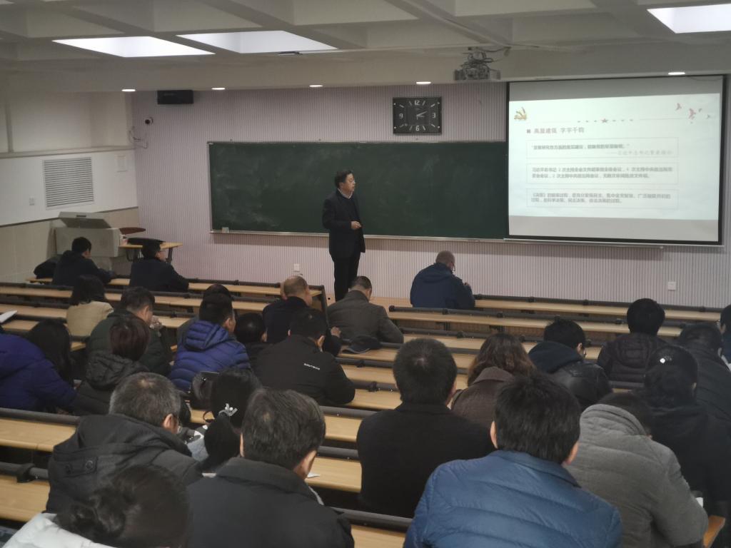11月26日下午,电信学院党委在兰工坪校区1北202组织召开《学习贯彻党的十九届四中全会精神》主题宣讲会,党委杨新华书记宣讲,学院全体教职员工参加。