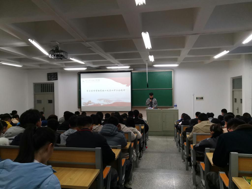 2019年11月22日,电气工程与信息工程学院在彭家坪校区集贤楼组织学院2019年秋季“青马工程”培训班全体学员学习十九届四中全会精神。学院“青马工程”培训班全体学员及团委、学生会全体干部参加了本次学习,会议由学院团委组织部负责人主持。