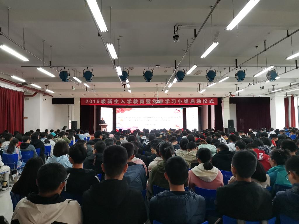 2019年10月24号下午,电信学院在彭家坪校区大学生活动中心三楼举办2019级党章学习小组启动仪式暨“不忘初心,牢记使命”专题讲座。学院党委书记杨新华,学院辅导员老师及2019级全体新生参加了本次活动,会议由张育儒老师主持。