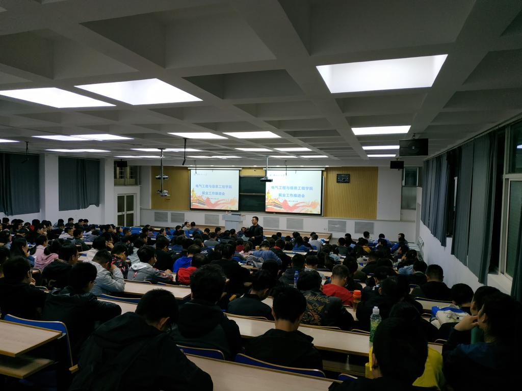 10月16日晚,电信学院召开2020届毕业生就业工作推进会,本次会议有幸邀请到就业中心副主任曹立宏老师、苗军老师以及马文静老师对同学们进行就业培训及指导,2016级辅导员李正安老师、2020届本科生和研究生参加会议。