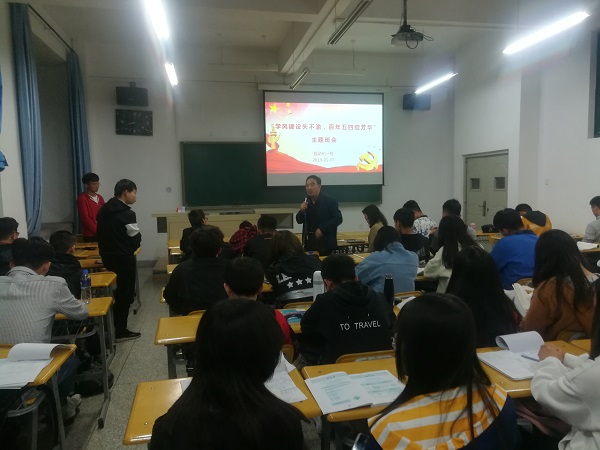 电信学院自5月7日起,结合习近平总书记纪念“五四”运动100周年大会讲话精神和学院学风建设工作实际,陆续邀请袁幼新副校长、国资处处长章小成老师、图书馆馆长毛显祥老师、教务处副处长冯宜伟老师、人事处副处长刘微容老师、宣传部副部长杨雅琼老师、校办副主任李大鹏老师等深入学院2018级各班级,开展“弘扬五四精神,加强学风建设”主题活动,鼓励广大青年继承和弘扬“五四”精神,引导他们树立远大理想、热爱祖国、担当时代责任、勇于砥砺奋斗、练就过硬本领、锤炼品德修为,自觉树立和践行社会主义核心价值观,努力学习增长知识,勇于实践练就本领,以真才实学服务人民,以创新创造贡献国家。