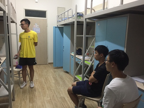 凌晨两点多进入答辩环节的选手与指导老师一起为当天上午的比赛做准备