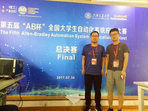 由教育部高等学校自动化专业教学指导委员会主办的第五届“AB杯”全国大学生自动化系统应用大赛总决赛日前在上海交通大学落幕。作为中国自动化行业最高级别的高校赛事之一,本届大赛吸引了来自上海交通大学、东北大学、哈尔冰工业大学、北京航空航天大学及美国威斯康星大学等国内外高校参加,经过初赛有62所高校进入最后的总决赛。我校电信学院自动化系13级学生王路路、强小宁组成的参赛队从初赛中脱颖而出,在决赛中不畏强手,凭借扎实的专业知识、突出的动手操作能力,在决赛中荣获本届比赛一等奖。