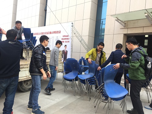 11月13日下午,在200多家用人单位陆续离场后,电信学院毕业生各党支部党员迅速集合,历经三个小时将会场内的450张桌子与700把凳子全部整理并归还于教学楼各个教室与大学生活动中心。