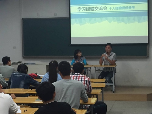 活动邀请大四、大三年级学习成绩优异的学生代表分享他们的大学期间的学习生活经验。他们在讲述自己学习方法的同时也告诫大家怎样将大学生活书写的多姿多彩,怎样规划好自己的学习时间,以及认清自己的目标。