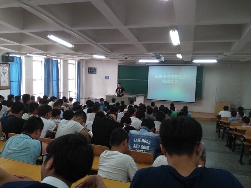 2014年6月14日,电信学院在西教1号楼208教室召开了“英语四六级”考前动员及诚信教育大会。学院辅导员及400余名考生参加了会议。