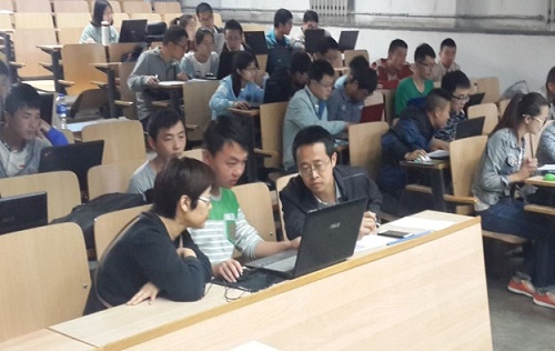 张萍副教授检查学生毕业设计